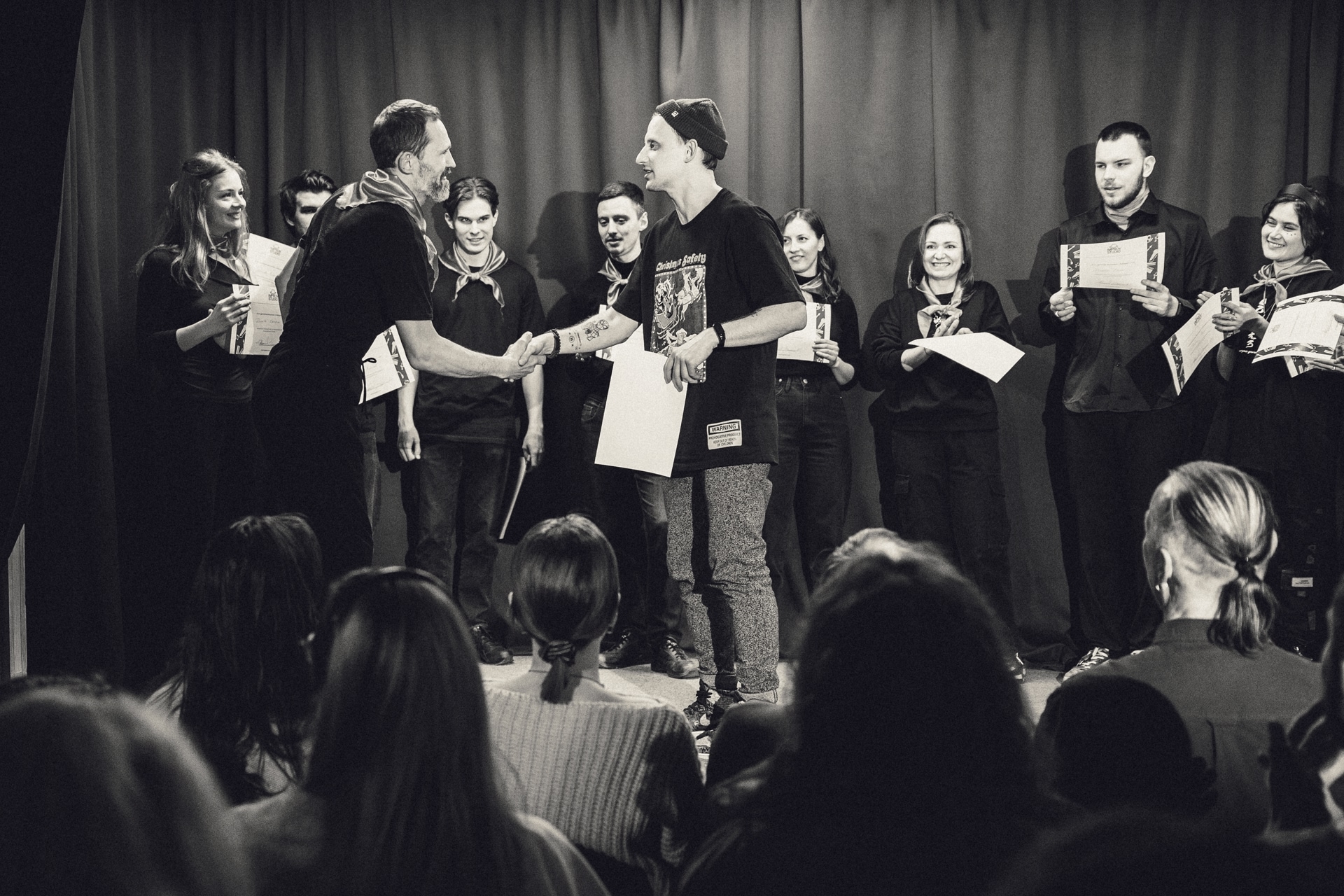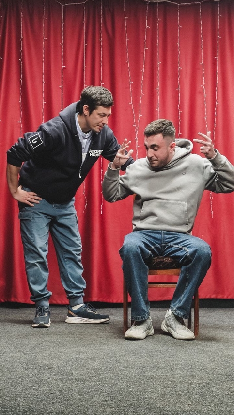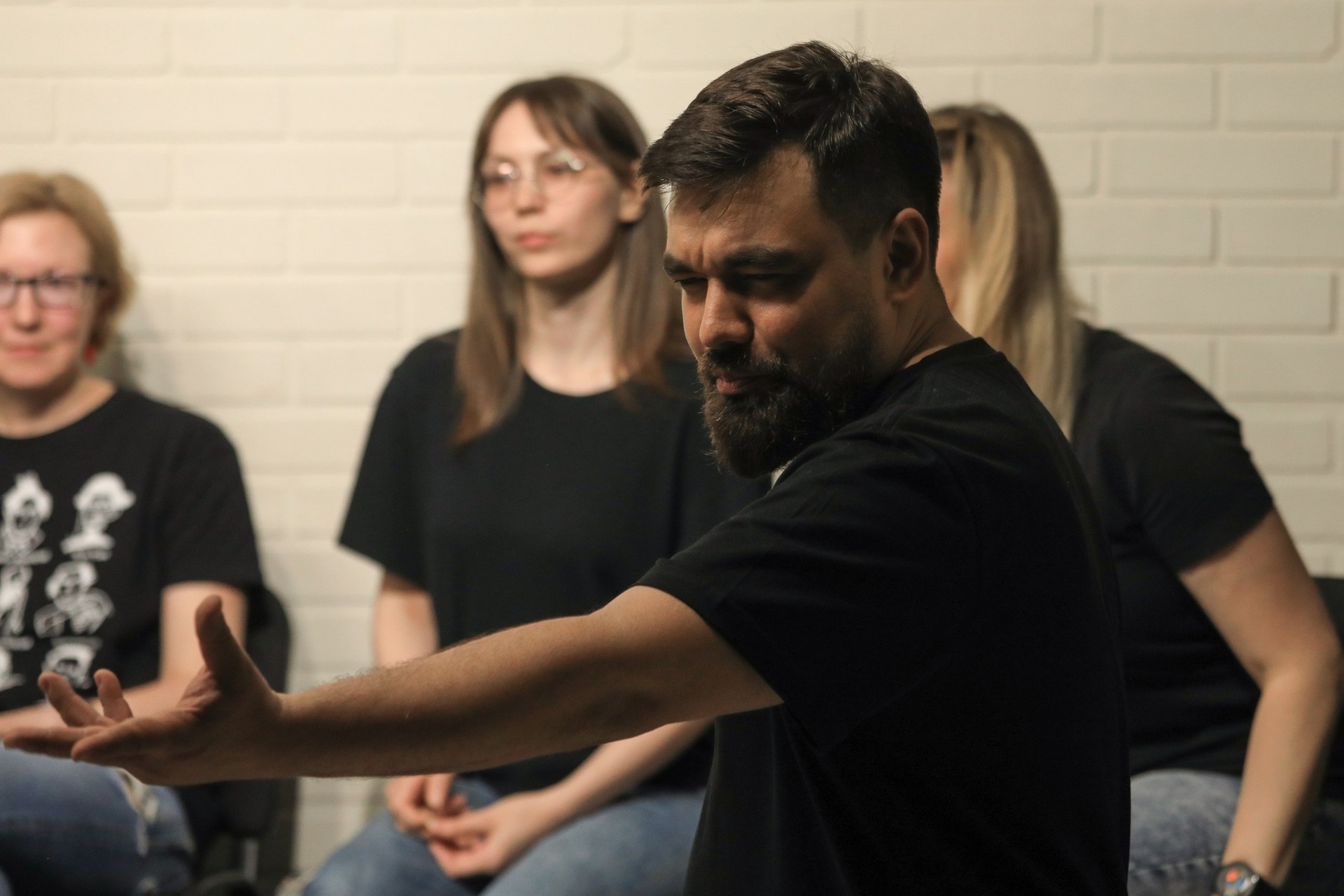 Женя — обладатель неоспоримого импровизационного опыта и боевого упрямства. На текущий момент прошёл уже несколько Жениных курсов, принял участие в фестивале импровизации, познакомился с килотонной замечательных людей, запасся парой томов необыкновенных историй, изменил взгляд на жизнь и на себя — и все ещё чувствую себя в начале пути. Это прекрасное ощущение. Надеюсь и вам доведётся испытать нечто подобное!»
